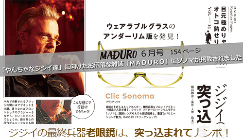 【ソノマ】下にフレームポイントとなるリムがあるハーフリムタイプのクリックリーダーです。個性的な印象に対してお顔になじみやすいデザイン。気軽におしゃれに、取り入れやすいカラーのフレームです。