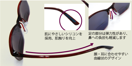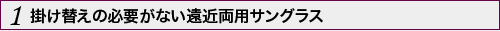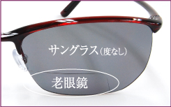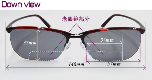 レンズの下部が老眼レンズになっているため視線を下部にそらすだけ! サングラスから老眼鏡の掛け替えの必要がありません、ドライブやゴルフ、釣りなど野外で大変重宝いたします。